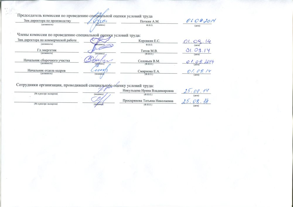 Комиссией центра аттестации проведена специальная оценка условий труда - условия труда соответствуют нормам.