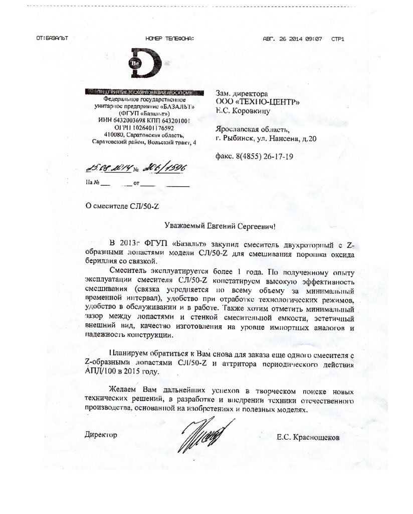 Планируем обратиться к Вам снова для заказа еще одного смесителя с Z-образными лопастями СЛ/50-Z и аттритора периодического действия АПД/100 в 2015 году.