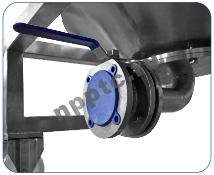 - Конструкция клапанов для загрузки/выгрузки материала, обеспечивает герметичность и долговечность в работе. Угол конуса емкости обеспечивает полноценную выгрузку порошков без остатка.