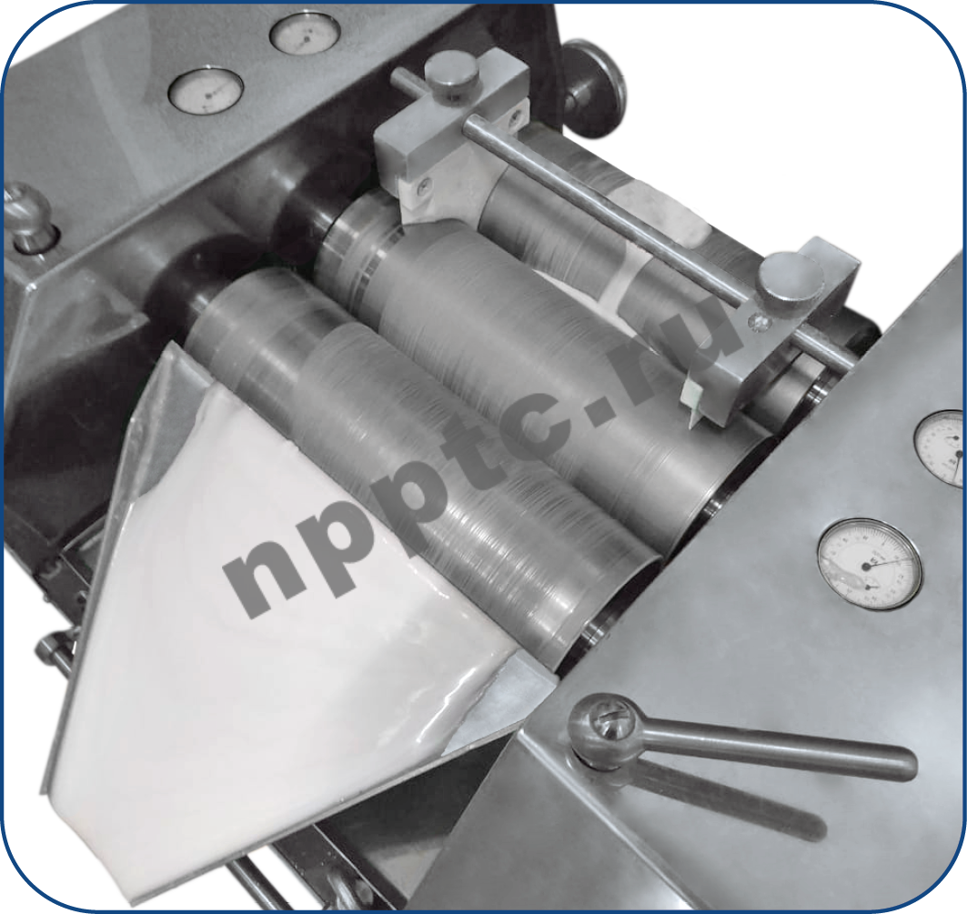 - Упавший с валов материал падает в специальный поддон для сбора пасты.