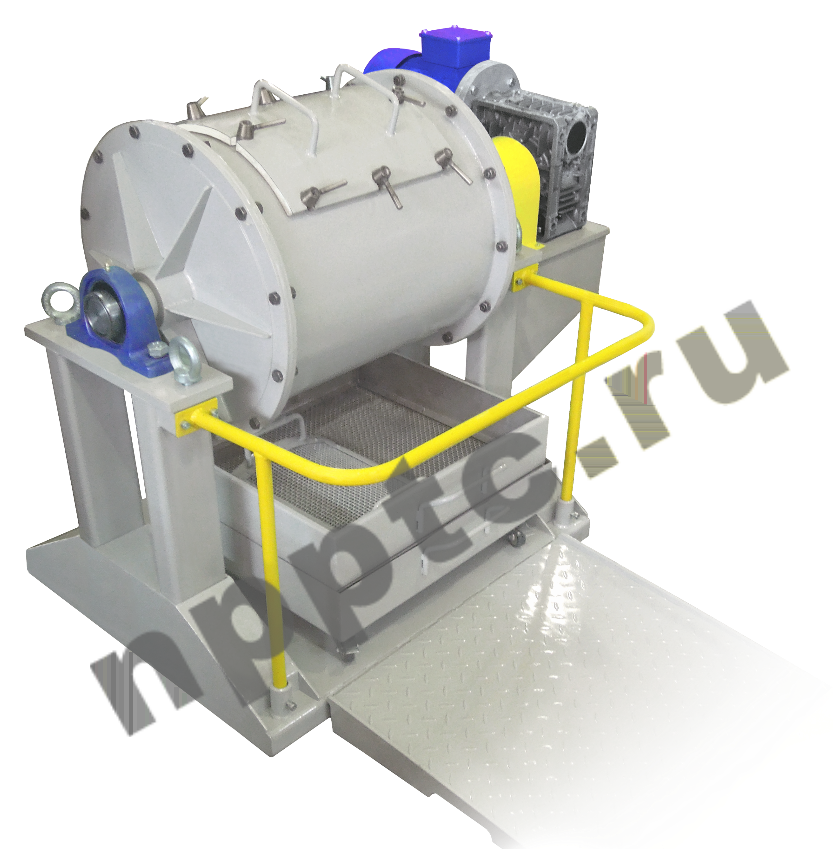 - Контактирующие с обрабатываемым материалом детали (барабан, крышка лючка, кожух и выкатной сборник порошка) изготовлены из нержавеющей стали 12Х18Н10Т.