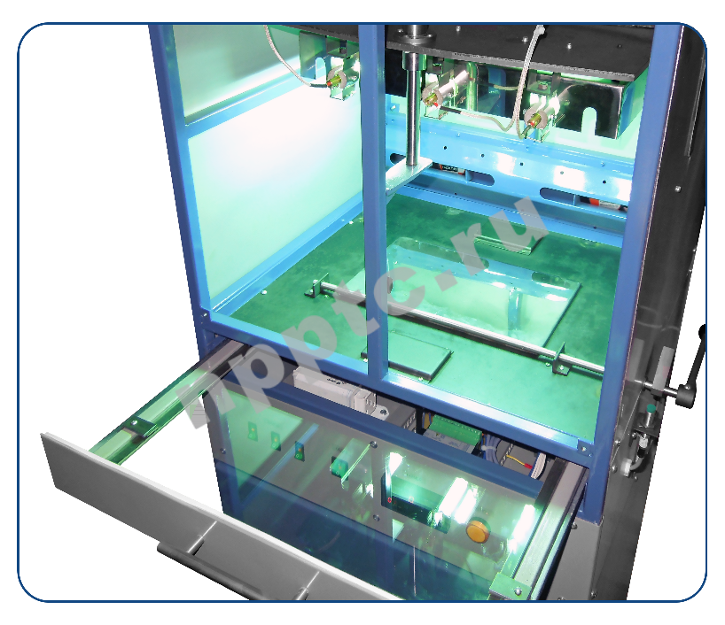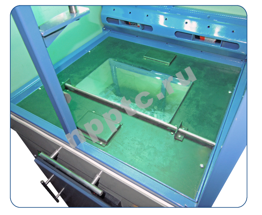 - Смонтированный в раме установки вакуумный насос, позволяет полностью и равномерно прижимать фотошаблон к заготовке.