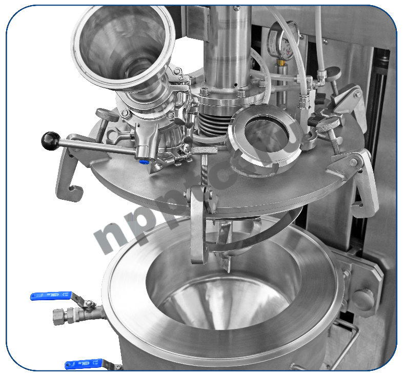 - Вакуум внутри конической лопастной сушилки позволяет удалять пары при низких температурах (так как температура испарения жидкости намного ниже, чем при атмосферном давлении), что делает коническую лопастную сушилку идеальной для сушки термочувствительных продуктов. Пары удаляются через пылевой фильтр, установленный в верхней части емкости. Это предотвращает потери продукта и попадание пыли в вакуумную систему.